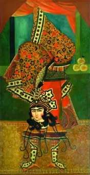 The paintings below are Qajar paintings of royal figures and people working in the court. I drew inspiration from the Romanowski deck and wanted to incorporate a deeper sense of history into my design. I focused on the Qajar era (often considered the golden age of Iranian art) where portraiture and imagery depicted figures in bold, unconventional ways. Women were shown dancing, posing, and even partially unclothed, challenging traditional norms and presenting a visual language unlike anything seen before.