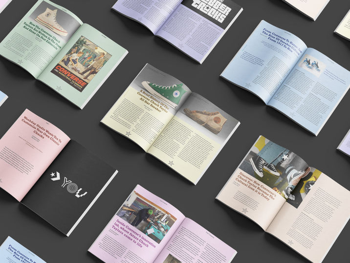 I explored Converse’s visual attitude to build a clear creative direction, studying their typography, layouts, and bold graphic language. From there, I created a moodboard, developed a consistent grid system, and selected imagery with an energetic, street-inspired tone. Each article was given its own colour palette and mood, using different tones and layouts to highlight the versatility of Converse culture.